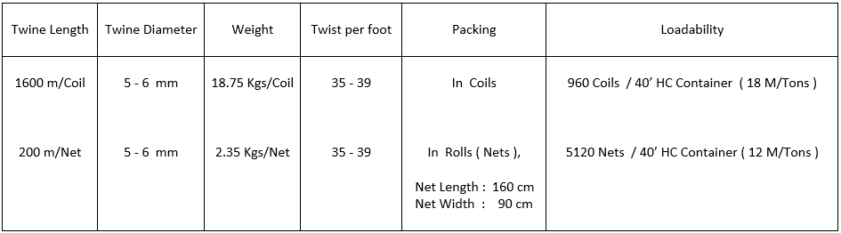 Specifications of Hop Twine are mentioned below