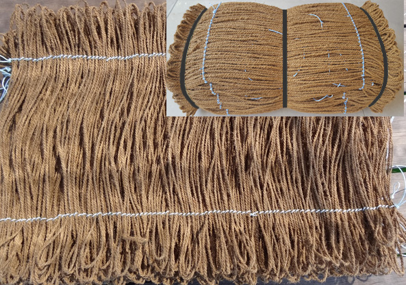 The Twine is made of Natural Bristle Coir Fibre and Twisted with an inner Polypropylene thread. This Twine is fully hair/ baby hair removed and available in Coils & Rolls ( Nets ). The Twine is used for Oyster / Sea squirt / Mongi cultivations.